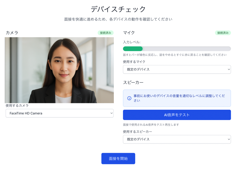 「緊張しやすい性格なので、AI面接は本当に助かりました。自分のペースで落ち着いて答えられたのが良かったです。」